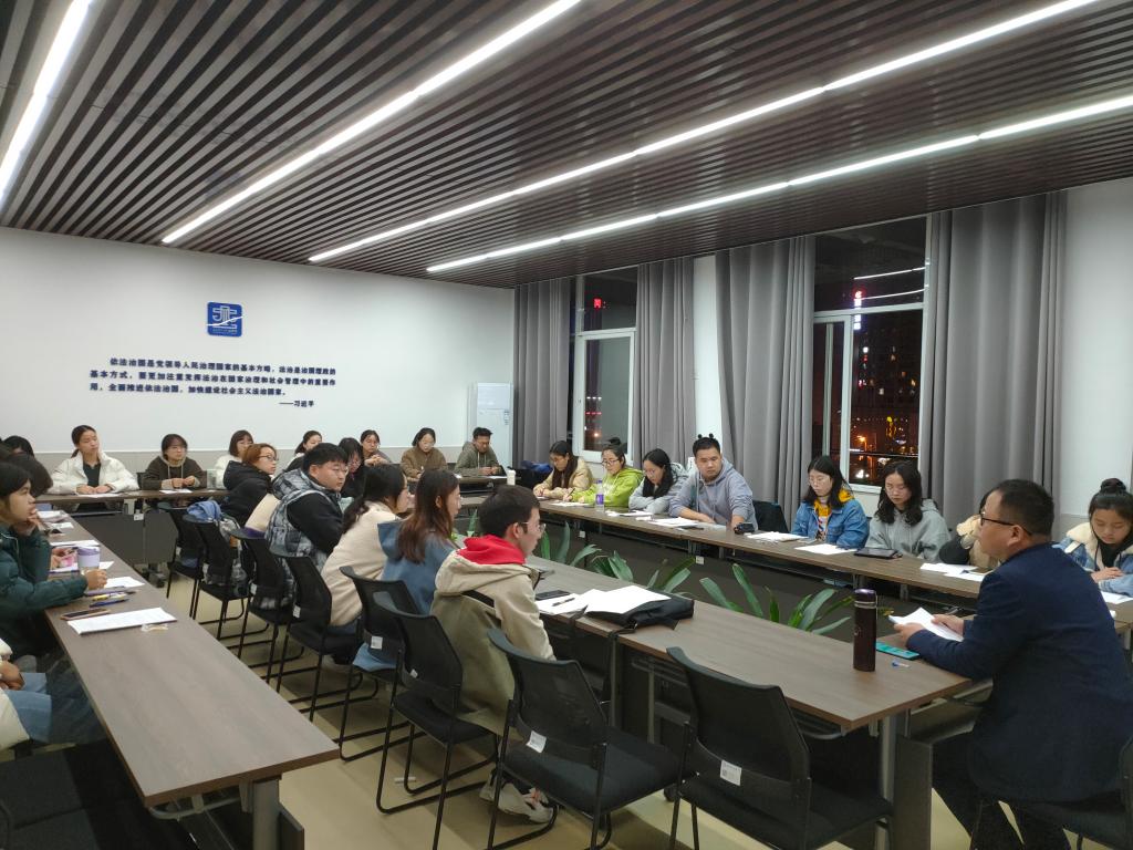 为深入把握法学院第十五期发展对象思想动态,进一步端正入党动机,提高我院发展党员的质量,并规范后续入党的各项程序,11月30日晚19点,法学院第十五期发展对象集体谈话在文科楼C616顺利举行,党总支副书记汪功伟、辅导员魏涛老师与各位发展对象进行了深度交流。