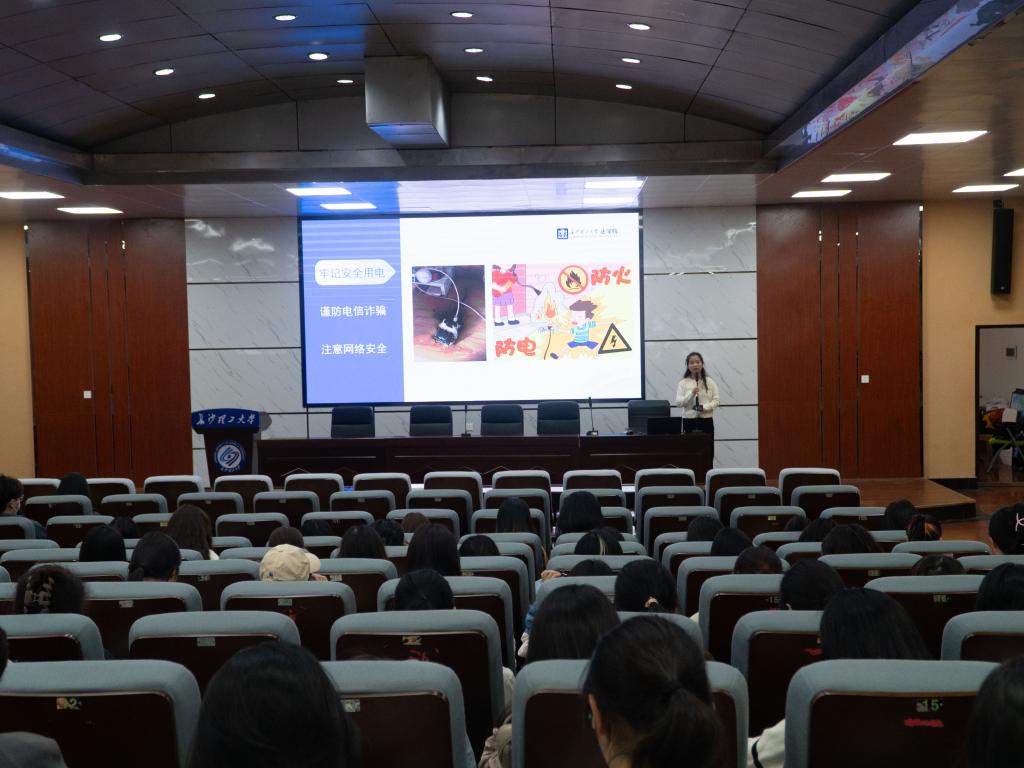 会议伊始,孙佳乐就近期存在的校内安全问题入手,向同学们再次强调了平日生活里注重消防安全与遵守宿舍规定的重要性,提醒同学们在宿舍内禁止使用违规电器、明火,禁止私拉电线等。孙佳乐指出,同学们对消防安全的意识还有所不足,需要在平日里加强消防意识建设。同时,她还特别强调,目前校内发生过多起在校学生遭受电信诈骗的案例,这说明同学们平日里对电信诈骗的识别和防范能力还有待加强。