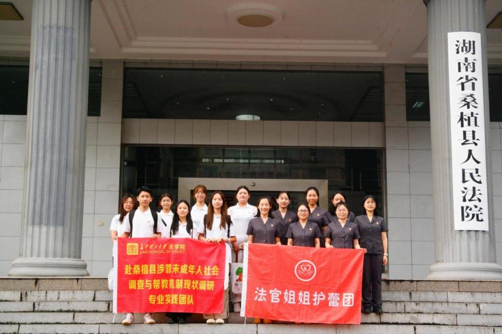 当天下午,实践团赴桑植县人民法院进行专题调研,与法官代表围绕涉罪未成年人司法保护展开深入交流。法院详细介绍了近三年涉罪未成年人案件审理情况,数据显示盗窃、故意伤害等案件占比较高,但总体呈下降趋势。法官重点阐释了“教育为主、惩罚为辅”的少年司法理念,并结合典型案例,剖析未成年人犯罪背后的家庭监护缺失、心理疏导不足等深层次原因。