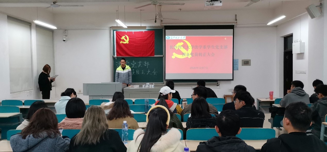 12月7日晚,法学系学生党支部在文科楼C406举行了预备党员转正大会。法学系学生党支部书记熊文娟、副书记刘阳参加了转正大会,党支部28名党员和16名预备党员参加了大会。大会由徐慧雯主持。