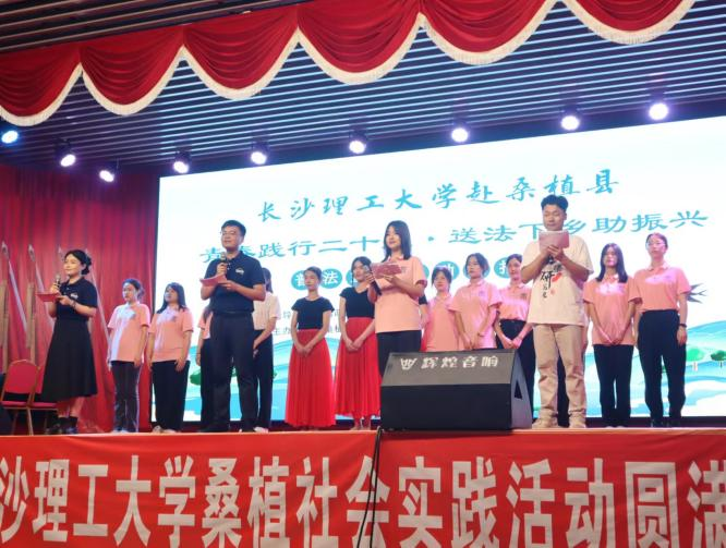 7月7日,桑植县刘家坪白族乡长征礼堂内人声鼎沸。“这里是由湖南省政协民宗委、张家界市政协、桑植县人民政府指导,桑植县司法局、伟德betvlctor1946源于英国校团委、法学院主办的青春践行二十大、送法下乡助振兴普法宣传活动汇报演出节目现场。”话音刚落,桑植民歌的旋律渐起,一场别开生面的“三下乡”汇报演出启幕。