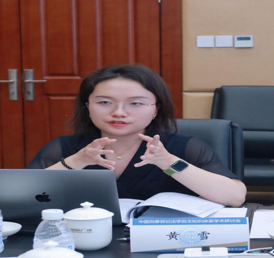 与会专家针对课题大纲提出了丰富且深刻的见解,并对课题接下来的研究做出了明确的规划与分工。黄雪博士根据与会专家学者的精彩发言,分享学习感悟、心得,并围绕“中国刑事诉讼法学自主知识体系研究”,结合个人经验展开讨论。她认为,知识论、方法论和实践论都是中国刑事诉讼法学自主知识体系中的重要组成部分,其中,“方法论”是一个“元要素”。一个成熟的学科必定需要科学的方法论,如同武侠小说中的“内功心法”。刑事诉讼在社会中的运行牵涉到各方各面,单纯依靠法内部视角的教义学无法完全获得条文要义,需要结合法外部视角的社会科学挖掘条文表象下的本质内涵。