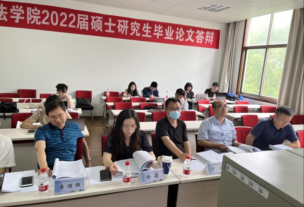 6月2日下午13:00,法学院2022届硕士研究生学位论文答辩会在金盆岭校区7号教学楼319室、308室、305室如期举行。本次学位论文答辩分为三组,并邀请到湘潭大学王霞教授、湖南工业大学陈雄教授、湖南金湘律师事务所陈醒律师作为校外专家担任答辩委员会主席,法学院十余位硕士生导师组成答辩委员会进行评定。20级、21级研究生到场旁听学习。