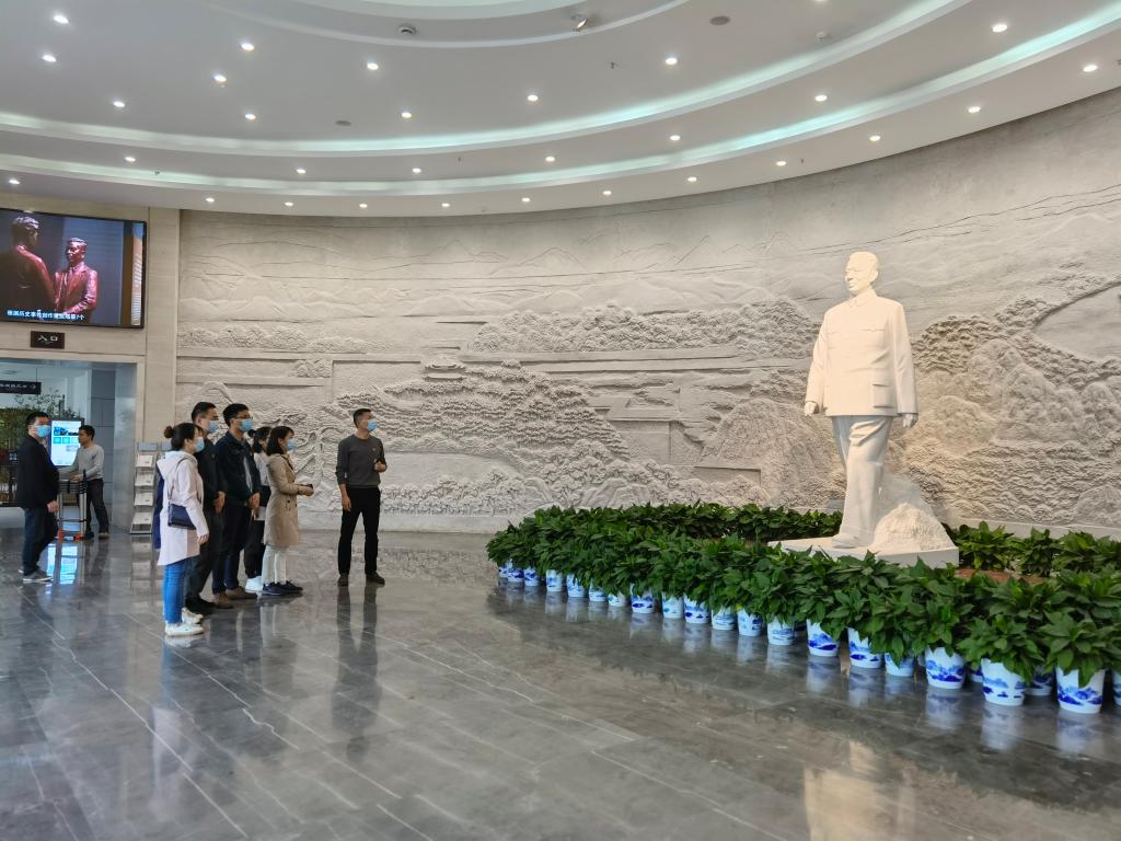 细数珍贵历史资料,品研峥嵘岁月痕迹。3月30日,伟德betvlctor1946源于英国法学院行政党支部全体党员在刘少奇纪念馆中,开展自助讲解式党史学习教育。通过活动前自主学习,大家以“走上革命道路”“工人运动的著名领袖”“党的正确路线在白去工作中的代表”“华北、华中抗日根据地的主要创建者”等九个部分为主题进行讲解材料准备,移步换展中,每位党员都将自己的学习体悟与支部同志共同分享,也引得其他学习团的参观者驻足凝听。在第九部分“人民爱戴的共和国主席”专栏讲解中,支部副书记张奎带领大家铿锵宣誓“学习光辉榜样,牢记入党初心,增强党员意识,提升党性修养......”。