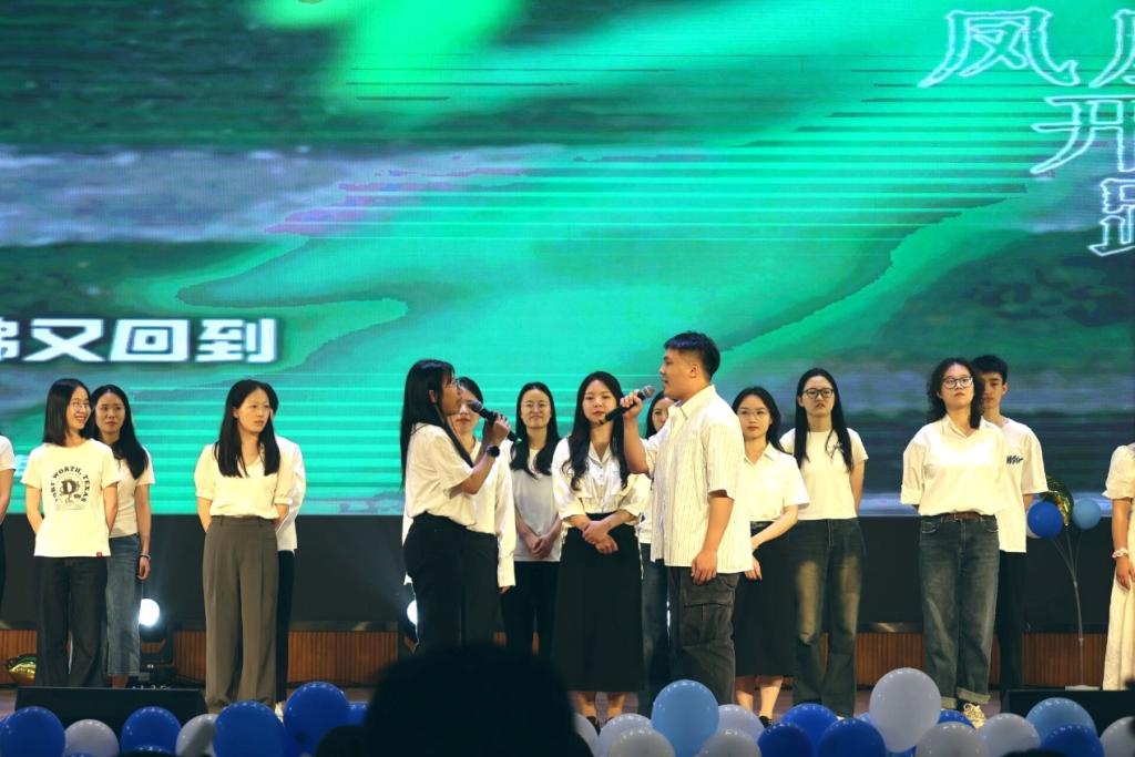 随着晚会的推进,现场的气氛愈发高涨。观众们以热烈的掌声和欢呼,表达他们对演出的认可和喜爱。晚会中还特别设置了 “抽奖环节” 和毕业生赠书环节,为现场的同学们送上了精美的礼物,带来惊喜与欢乐的同时,也增添了现场的互动性和趣味性。