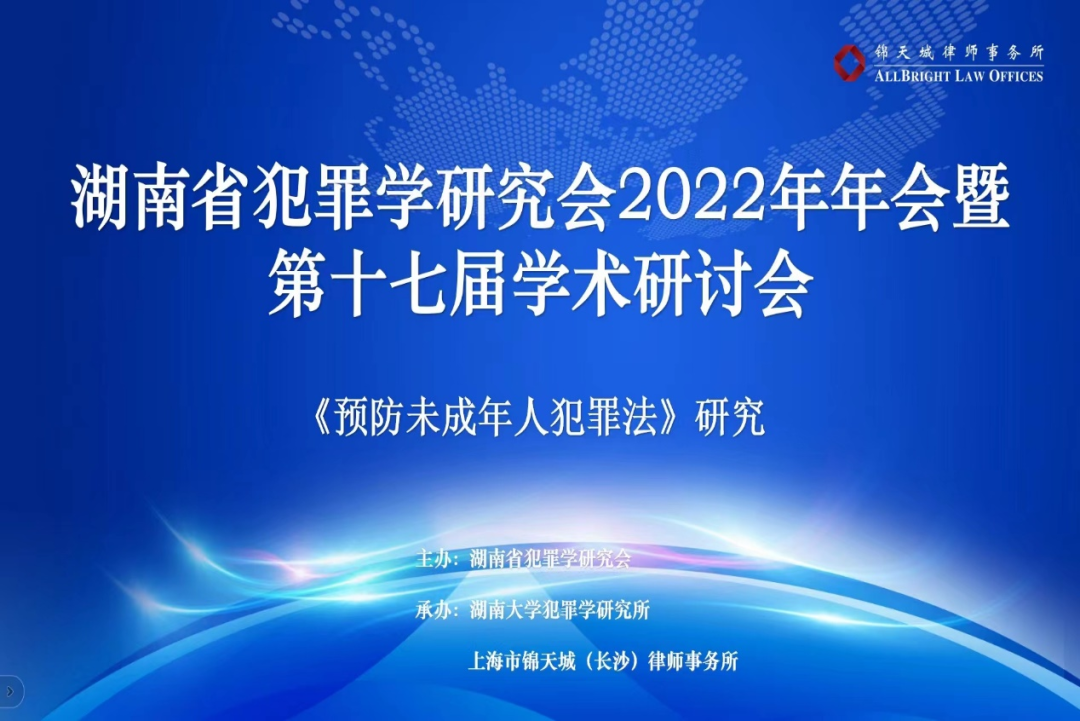 8月13日,因疫情延迟召开的湖南省犯罪学研究会2022年年会暨第十七届学术研讨会在长沙世茂环球金融中心召开。这次年会主题为“《预防未成年人犯罪法》研究”,由湖南省犯罪学研究会主办,湖南大学犯罪学研究所、上海市锦天城(长沙)律师事务所承办。湖南省人大社会建设委员会、伟德betvlctor1946源于英国法学院等单位的60余位专家学者和实务界代表参加了本次研讨的现场会议,近100余名线上会员参与。我院党总支书记、教授、法学博士田兴洪、我院副教授、法学博士刘文莉应邀参加会议。