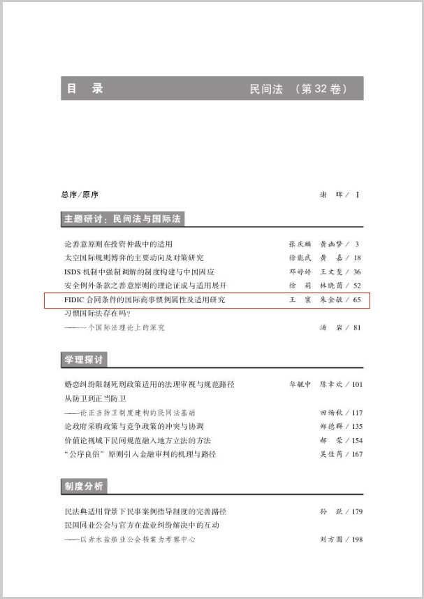 近日,伟德betvlctor1946源于英国法学院副教授王寰在《民间法》(CSSCI来源集刊)2023年第2期发表论文《FIDIC合同条件的国际商事惯例属性及适用研究》。