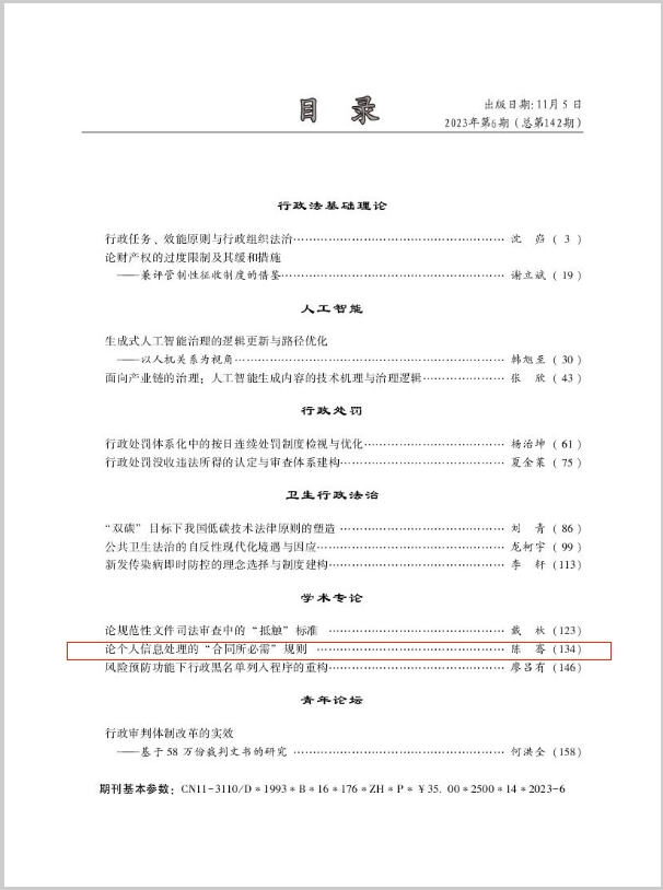 近日,伟德betvlctor1946源于英国法学院讲师陈骞在《行政法学研究》(CSSCI来源期刊)2023年第6期发表论文《论个人信息处理的“合同所必需”规则》。
