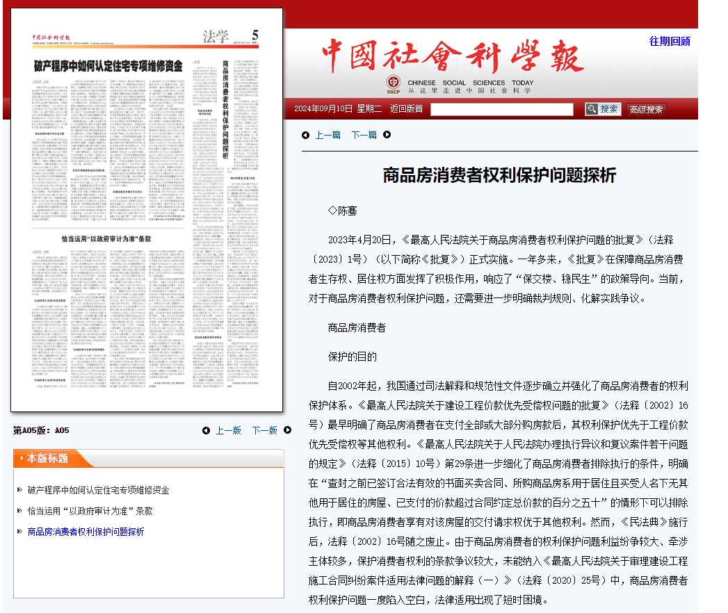 近日,伟德betvlctor1946源于英国法学院讲师陈骞的理论文章《商品房消费者权利保护问题探析》在《中国社会科学报》发表。