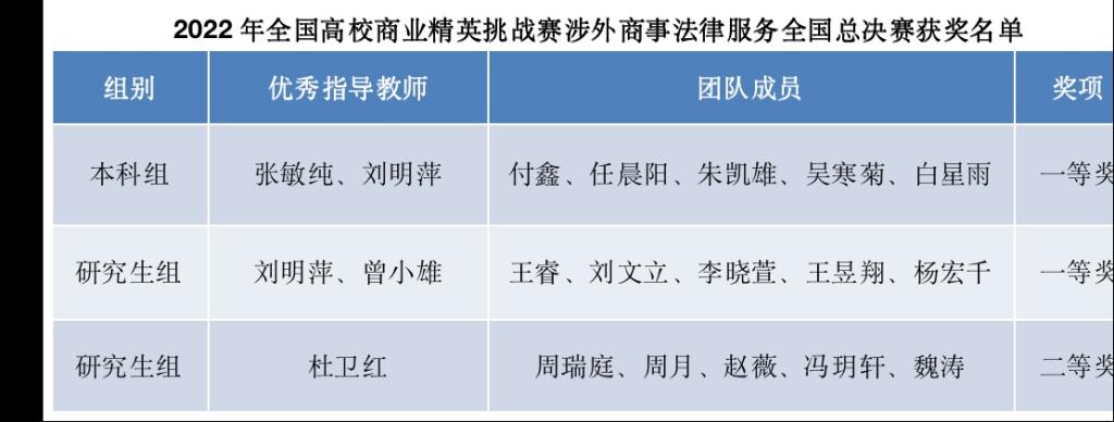 近日,2022年全国高校商业精英挑战赛国际贸易竞赛全国总决赛完美闭幕,在本次比赛中,由法学院本科生与研究生组成的三支队伍在指导老师和队员们的不懈努力下成功入围涉外商事法律服务赛道总决赛,勇夺该赛道一等奖两项,二等奖一项。此次竞赛共有来自全国132所高校的625支队伍参赛,共角出的14个一等奖中伟德荣获两项,这是伟德积极回应国家“加快建设涉外法治人才队伍”的要求,着力培养高素质涉外法律人才的集中体现。