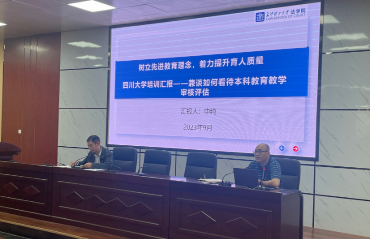 伟德betvlctor1946源于英国教学管理与教学创新专题干部研修班于2023年7月10日在四川大学全国干部教育培训基地举行。我院院长张敏纯,副院长申纯全程参加此次培训学习。为将学习的收获传达到学院每位教师,以全新的姿态和昂扬的斗志开启新学期的各项工作,特举办此次学习心得分享会。申纯以《四川大学培训汇报——兼谈如何看待本科教育教学审核评估》为题,做专题汇报。