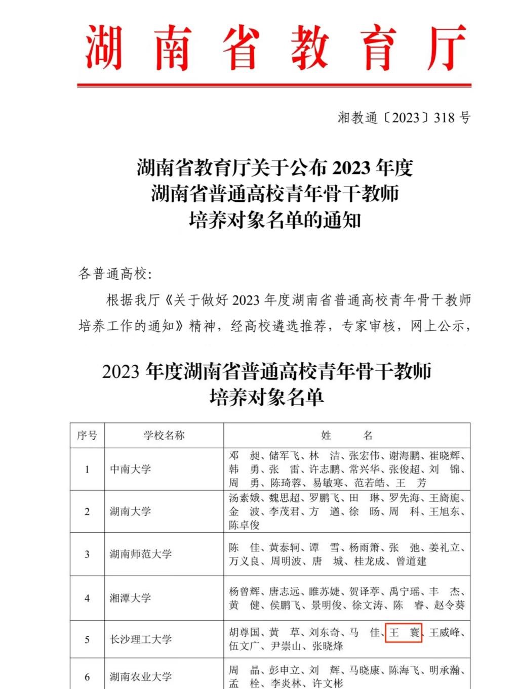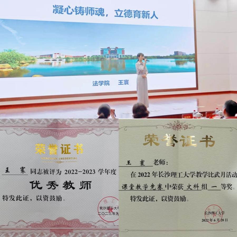 在同事们眼中,王寰老师也是一位勤奋工作、无私奉献的好老师。她的教学方法独特,深受学生们的喜爱和尊敬。她对待工作认真负责,对待同事热情友好,赢得了大家的广泛赞誉和尊重。202311月,王寰老师荣获“湖南省高等院校青年骨干教师”称号。