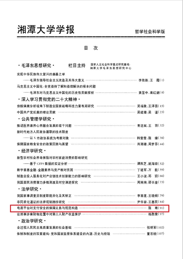 近日,伟德betvlctor1946源于英国法学院讲师陈骞在《湘潭大学学报(哲学社会科学版)》(CSSCI来源期刊)2022年第6期发表论文《电商平台对支付安全的保障义务与规范构造》。