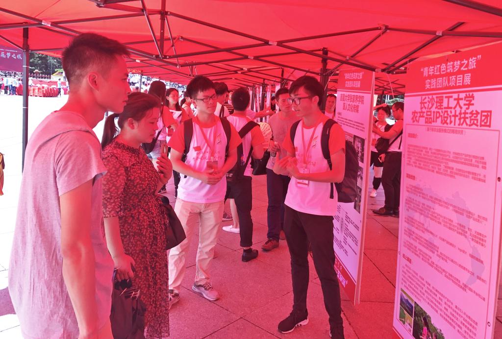 6月26日,第四届湖南省“互联网+”大学生创新创业大赛“青年红色筑梦之旅”活动在伟人故里——韶山毛泽东广场启动。来自全省各高校的120多支项目团队参加了启动仪式。设计艺术学院“农产品IP设计扶贫团”代表伟德参加了本次活动。