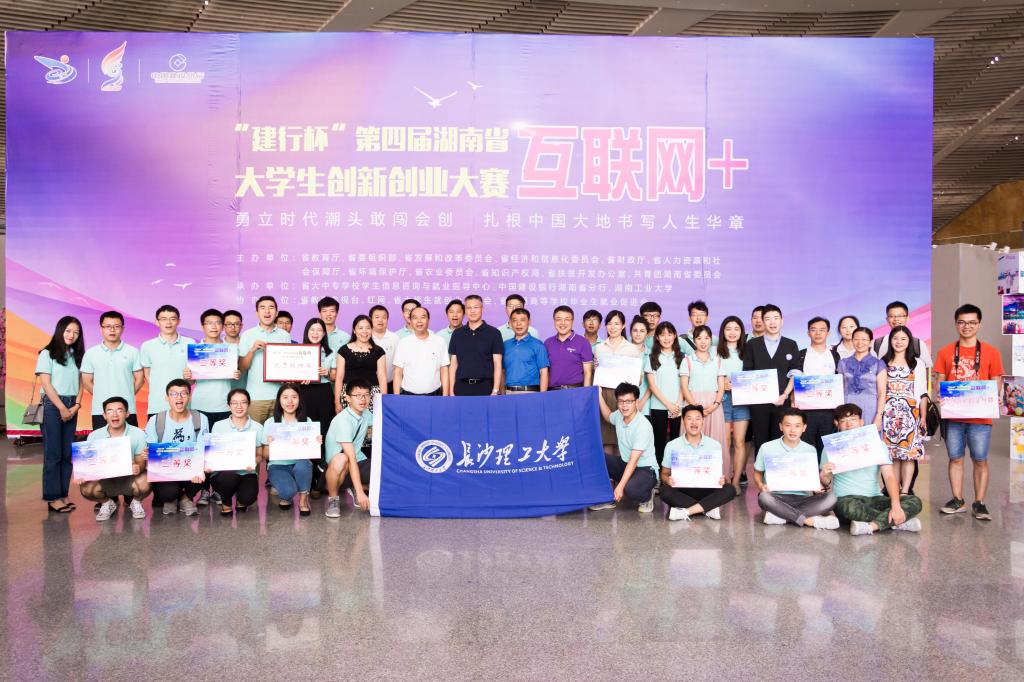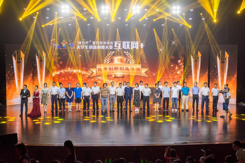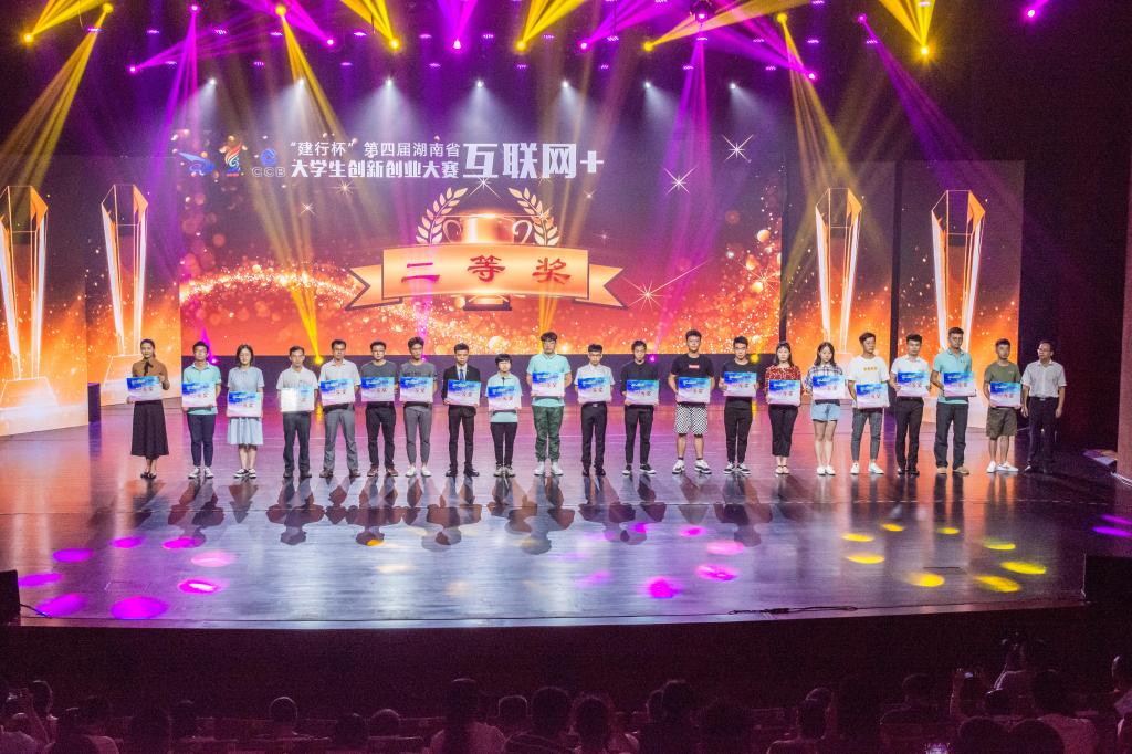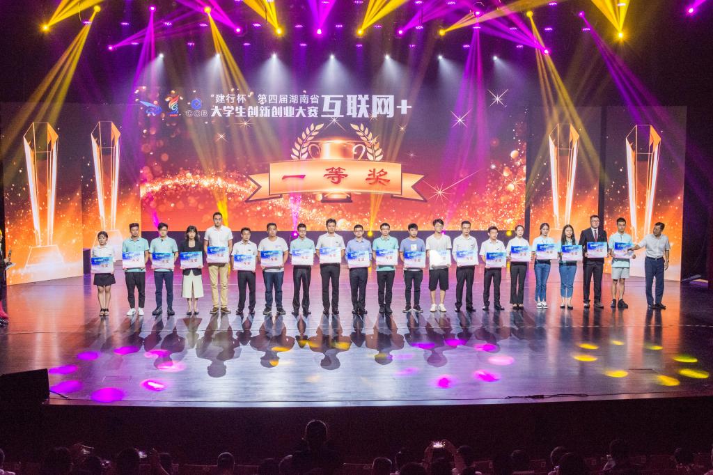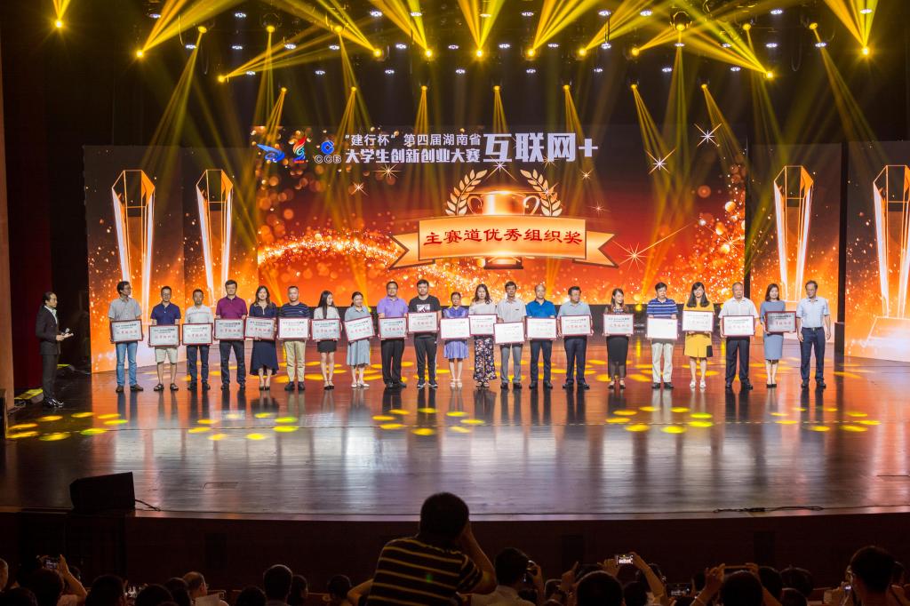 2018年8月31日, “建行杯”第四届湖南省“互联网+”大学生创新创业大赛在湖南工业大学落下帷幕。伟德副校长蒋昌波、以及创新创业教育学院负责人、项目团队指导教师、获奖团队代表等45人参加了在株洲神龙大剧院举行的颁奖典礼。