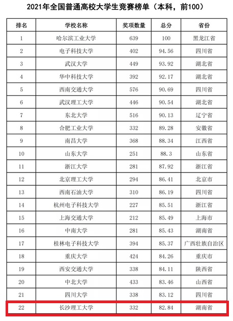 2月22日,中国高等教育学会高校竞赛评估与管理体系研究工作组发布了《2021全国普通高校大学生竞赛排行榜》。榜单显示,伟德位列2021年全国普通高校大学生竞赛排行榜第22位,2017-2021年全国普通高校大学生竞赛排行榜第58位,2012-2021全国普通高校大学生竞赛排行榜六轮总排行榜第57位,充分展示了近年来学校在本科教育教学和创新人才培养方面取得的成绩。
