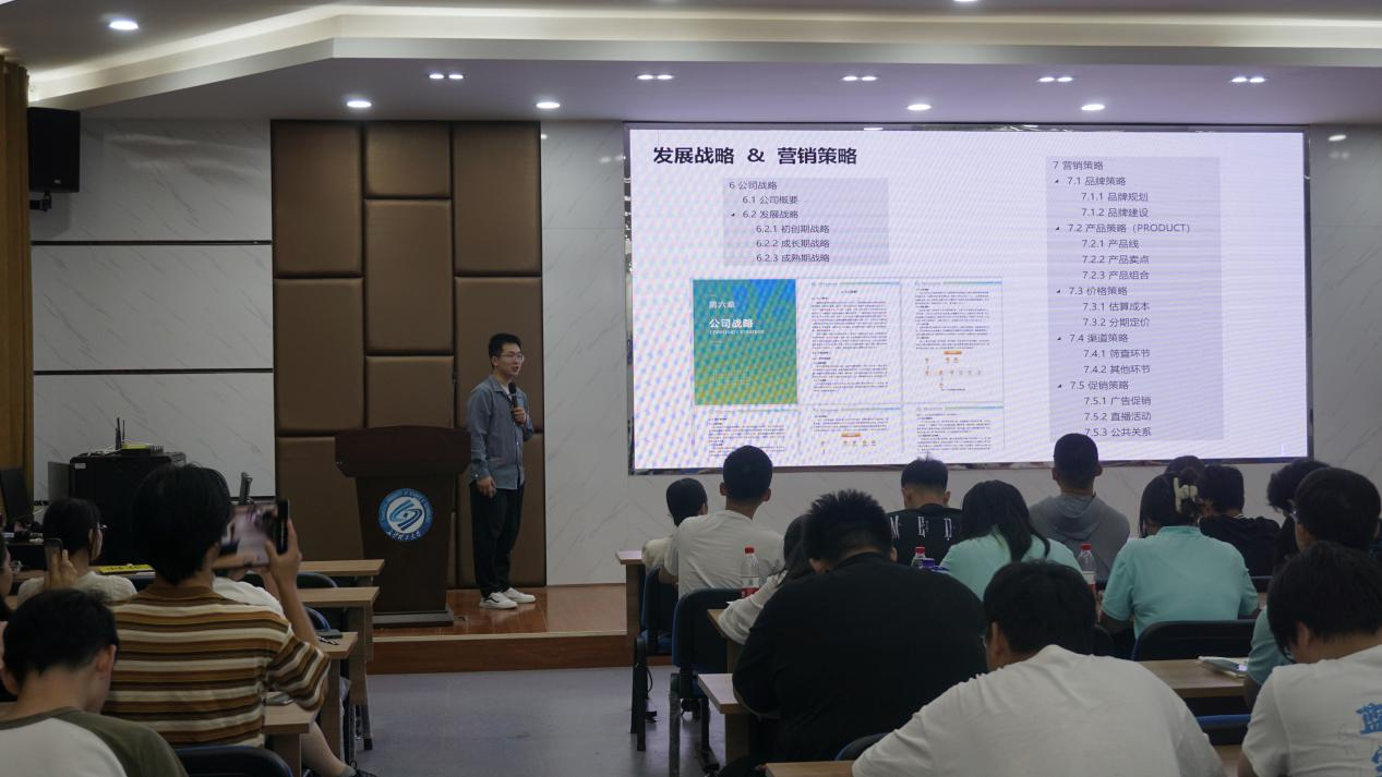 下午,王淑禾与洪鑫围绕“如何在互联网+大赛中脱颖而出”的主题,分享了他们的参赛经验。洪鑫从大赛概况、大赛分析、团队组建、网络评审、网评材料准备五个方面进行了详细阐述,王淑禾就优化路演PPT、制作视频、佐证核心优势、挖掘各类创新、提升社会价值、扩大经济效益几个方面进行了深入分析。最后,两人就在场同学提出的问题进行了耐心解答。