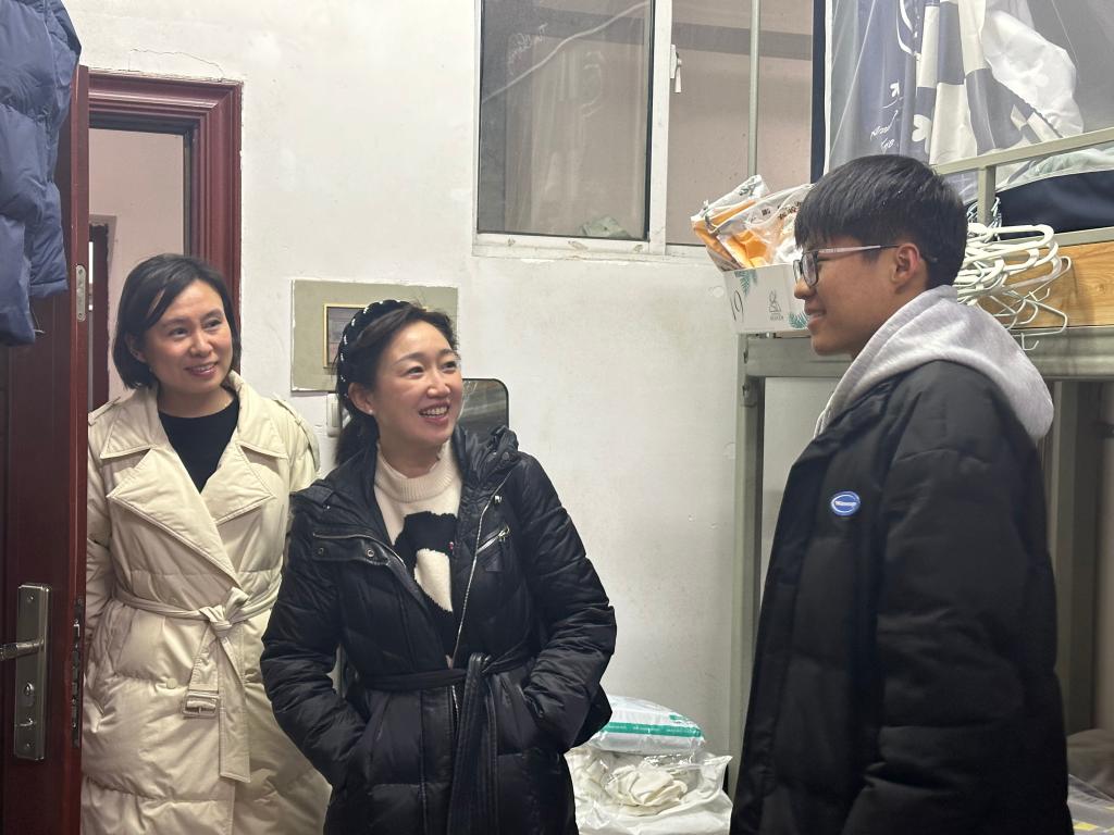 当晚,全体院领导深入学生宿舍看望学生。在走访过程中,学院领导走进每一间寝室和同学们亲切交谈,为大家送上了新学期的零食大礼包,关切的询问大家:春节过得怎么样?新学期有何计划?生活和学习上是否有困难?鼓励大家在新学期要有新收获,尽快进入学习状态、刻苦学习专业知识、牢固掌握专业技能。