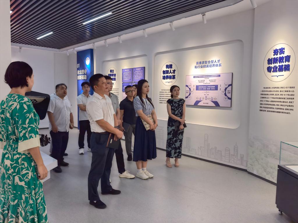 陈智一行首先参观了卓越工程师学院实训室、创新创业教育展厅及创业园,详细了解了伟德创新创业教育体系和科创工作开展情况,对共建机器人创新孵化中心的场地进行了细致考察。