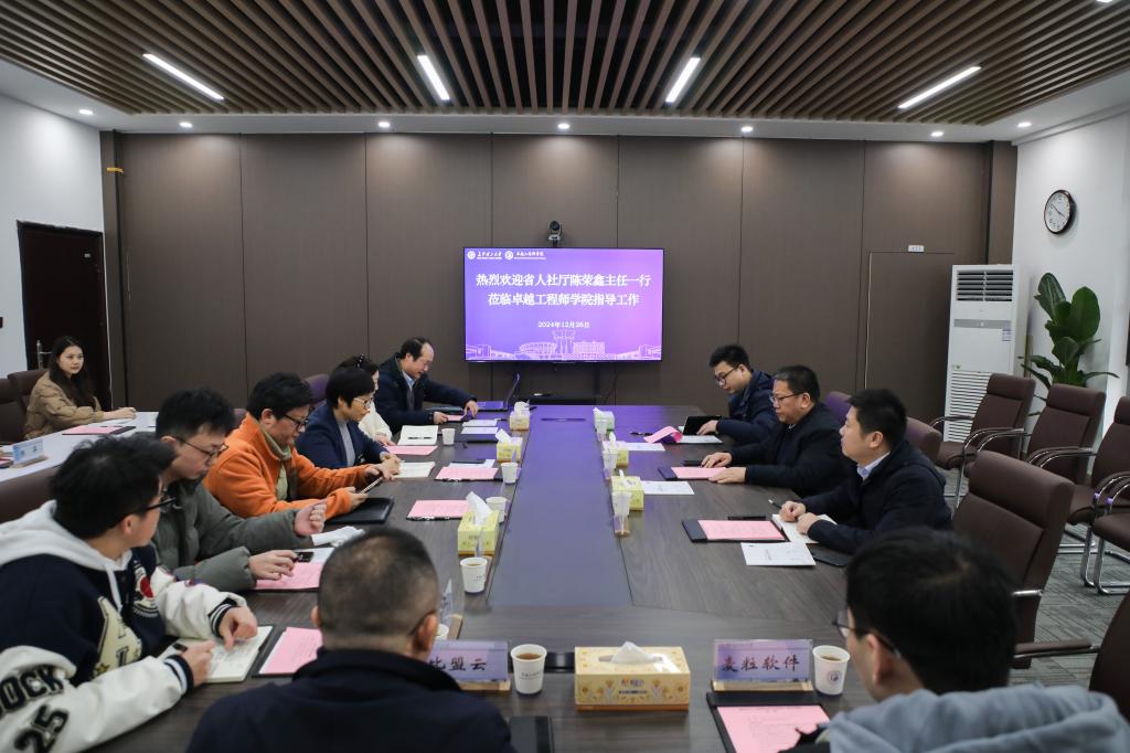 12月26日下午,湖南省人力资源和社会保障厅就业服务中心党委书记、主任陈荣鑫、创业服务部部长毛彪、创业服务部二级主任科员胡川一行组成调研组来到伟德,就大学生创业孵化基地进行实地调研。校党委书记付宏渊陪同调研。湘江卓越工程师学院负责人参加调研和座谈。