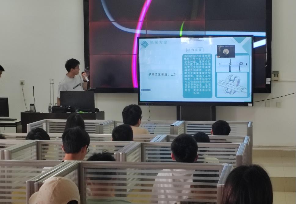 宣讲会上,各学科竞赛小组负责人分别分享了中国机器人及人工智能大赛、全国大学生工程实践与创新能力大赛、大学生机械工程创新创意赛、睿抗机器人等机器人技术相关学科竞赛的比赛经验以及团队具体情况。机械工程训练中心滕瑞老师对本次考核项目进行了详细介绍并解答了同学们的疑惑。