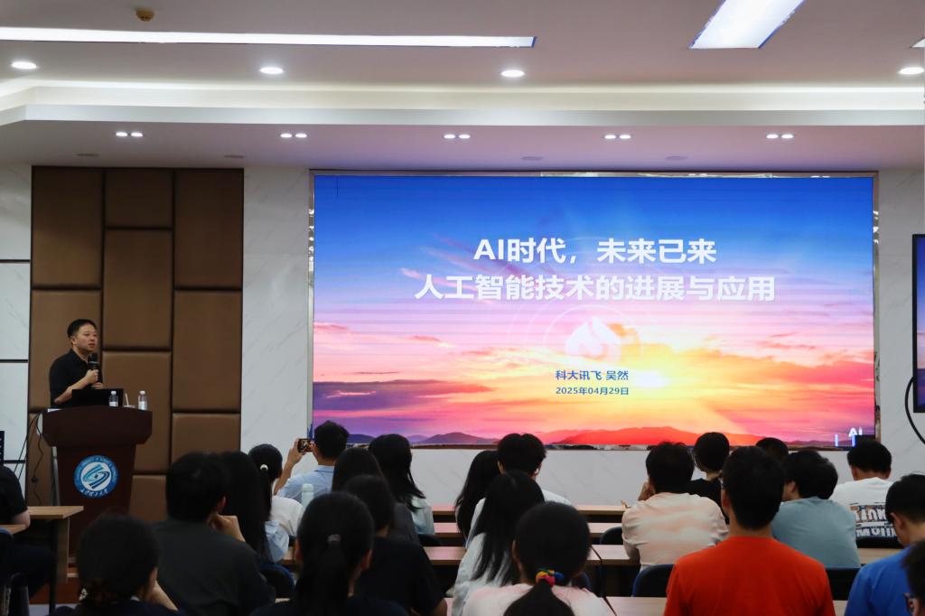 4月29日下午,卓越工程师学院于学生活动中心207会议室举办第八期卓越讲坛,此次讲坛由科大讯飞产教融合生态总监吴然进行题为《“AI时代 未来已来”人工智能技术的进展与应用》的分享。来自卓越工程师学院、数学与统计学院、物理与电子科学学院的100余名学生参会,讲座由卓越工程师学院辅导员陈若晨主持。