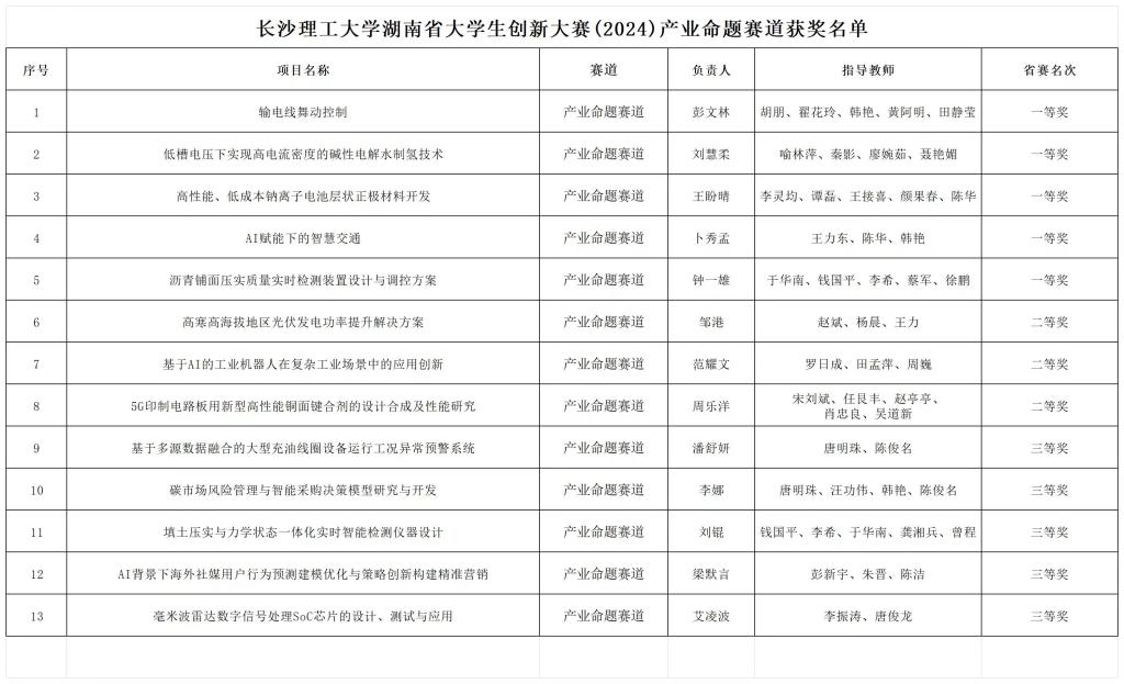 附:伟德湖南省大学生创新大赛(2024)产业命题赛道获奖名单