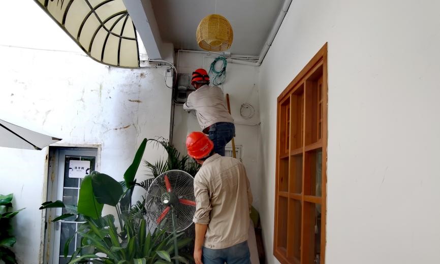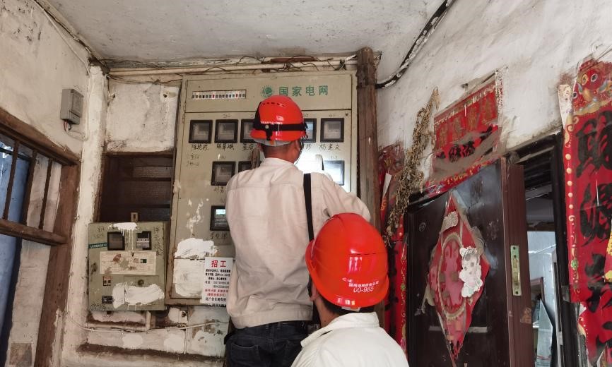 前往报修点途中,欧师傅向实践队员讲解抢修工作流程及作业观摩注意事项,并反复强调“抢修工作安全第一”。抵达故障现场后,欧师傅开展用电故障检修工作,通过检查用户电表、观测表内接线及开关情况、询问用户用电状况等迅速判断故障原因,并进行维修恢复供电。“这是由于超负荷用电引起的电表停转,属于内线故障,建议办理电表增容,将单相表换成三相表。”恢复供电后,欧师傅向用户解释故障原因并给出后续维修方案。
