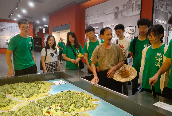 一幅幅图片印入脑海,一句句壮语流入心间。当地老干部黄基明先生,在七十年代曾是民兵连的连长,对这些英雄事迹烂熟于心。他热情地为实践团成员们讲解了每一幅图片背后的故事,或是前线忘我奋战,或是后方无私奉献。黄基明先生讲的不仅仅是故事,还是一位位为人民付出的英雄,一颗颗为党贡献的赤心。在一个个故事的渲染下,在一个个赤心的感动下,实践团成员们都展现出严肃与崇敬的神色。说者有意,听者也有心,实践团成员们在黄基明老先生的讲解中收获的不仅是知识,还有着为党和人民无私奉献的精神。