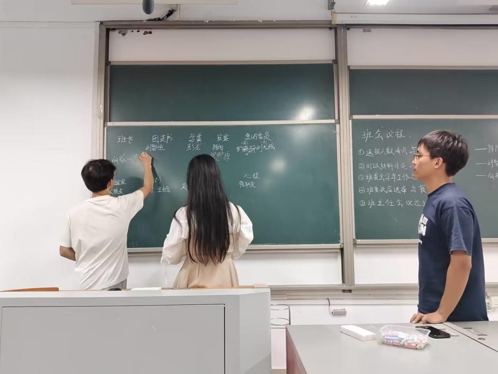 班会开始前,学院结合实际情况制定了学院班会方案,并整理了各班上学期期末考试成绩、本科教育教学审核评估知识手册等材料一起提供给各班班主任。班会上,各班班主任围绕理想信念教育、养成教育和劳动教育、心理健康教育、安全教育等与同学们进行了深入探讨,同学们积极分享暑假期间的实践收获。随后,各班班主任带领同学们再次学习了本科教学评估相关内容,确保全院学生掌握相关内容,并根据各班上个学期的成绩开展班情学情分析,引导挂科学生分析挂科原因准备参加补考。最后,各班进行班委换届,在班主任全程监督和严格把关下选举出新一届班委会。