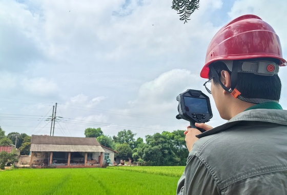 7月24日,伟德betvlctor1946源于英国电气学院实践队赴国网沅江市供电公司实践队输电班开展高温特巡,师傅带领实践队员周壮力和孙茂江对乡间输电线路进行隐患排查。本次特巡采用人工测温与无人机协同方式,共巡查电塔17座。
