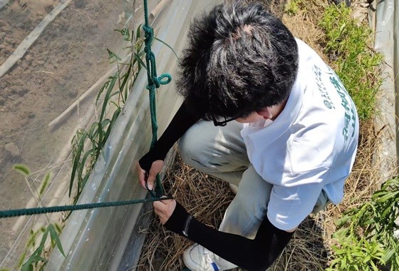 炎炎烈日下,一排排蔬菜大棚在阳光下熠熠生辉,实践队员们在刘师傅的指导下对大棚进行加固绑定。作为国家蔬菜保供的重要基地,青州每一座大棚都关系着千家万户的“菜篮子”,更牵动着全国供应链的安全。加固大棚一方面可以防止大风将大棚吹起影响高压线路安全,另一方面也守护着农户的劳动成果,为国家蔬菜安全筑牢第一道防线。青州市供电公司在保障电力安全的同时,主动担当社会责任,建立“大棚绑定”常态防护机制。