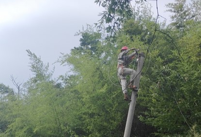 考虑到断电后独居老人的安全风险,抢修刻不容缓。唐祖志决定冒雨作业。他系上双保险安全带,严格按照安全规程,在雨中完成了线夹更换与断线重接。恢复供电后,队员们与老人交谈得知,其子女均在外务工,家中照明仅靠几盏节能灯。老人摩挲着电灯开关,声音哽咽:“谢谢你们,冒着大雨,赶这么远的路来帮我这个老人家修电线……”