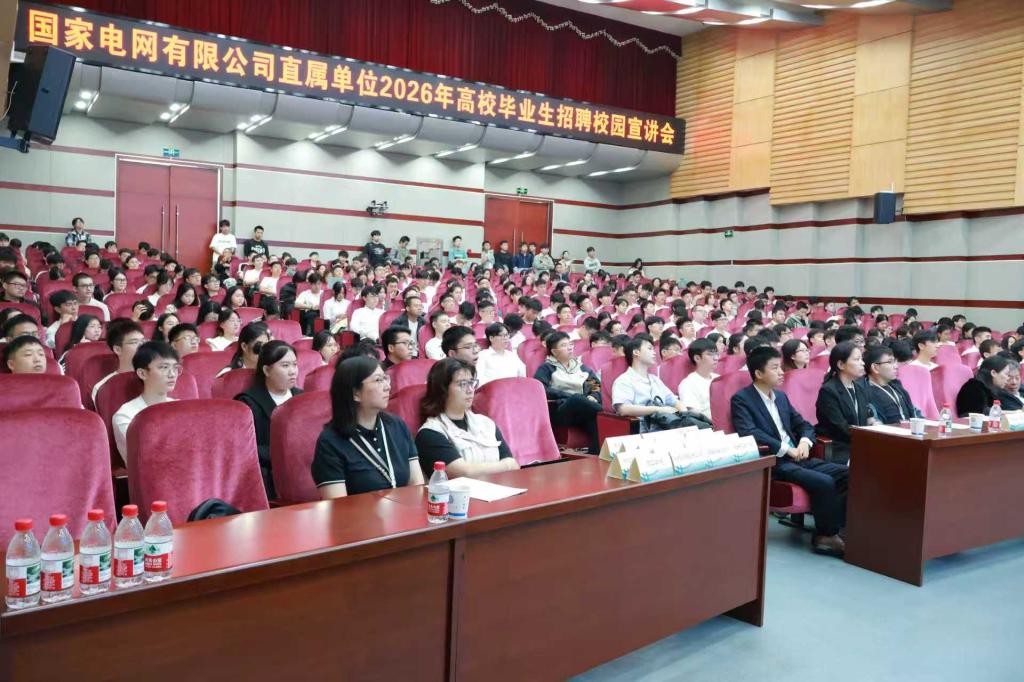 9月22日上午,国家电网有限公司直属单位2026年高校毕业生招聘校园宣讲会在伟德云塘校区图书馆报告厅举行。国网人才交流中心顾问赵培胜,学校就业创业处处长田上,电气学院党委书记丁丹、党委副书记周巍,国际工学院党委副书记黄黎明共同出席招聘宣讲会。