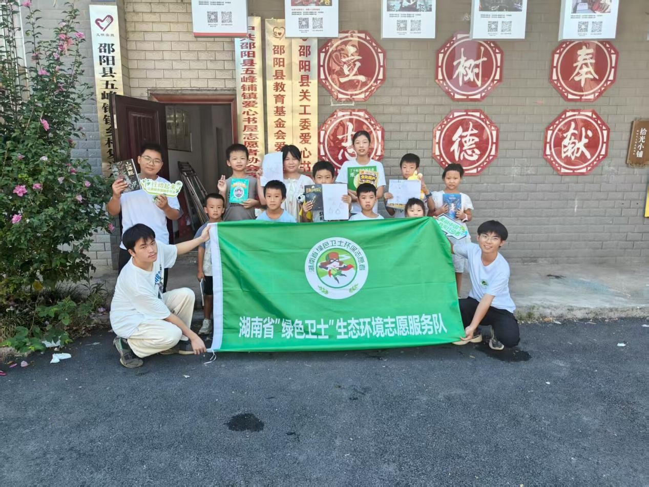 8月28日,湖南省邵阳市邵阳县五峰铺镇兴峰社区热闹非凡,“绿色卫士”项目推出的“蓝韵书香・绿卫生态”文化环保主题活动圆满举行。活动以生态科普与本土文化传播为核心,通过捐赠书籍、知识共读、手工创作等丰富形式,让孩子们在互动中感受家乡魅力,为乡村文化传承与生态守护注入青春力量。