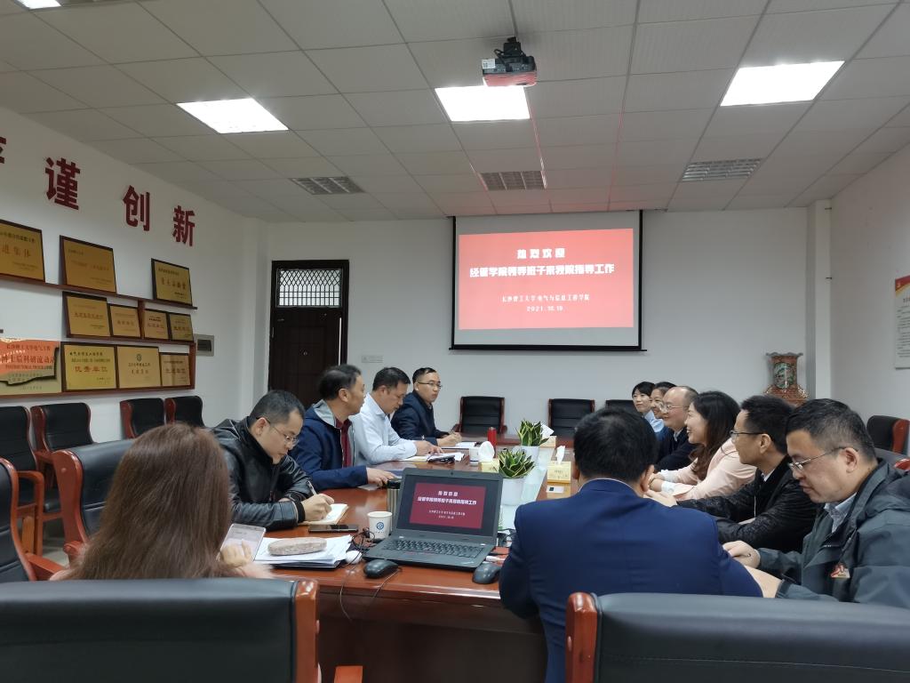 10月19日上午,电气学院与经管学院领导班子成员在工一B505联合开展中心组理论学习研讨,学习贯彻落实校党委书记付宏渊、校长曹一家在新学期第一次党政联席扩大会议和学院调研会上的指示精神,深入推进党史学习教育“我为群众办实事”实践活动。