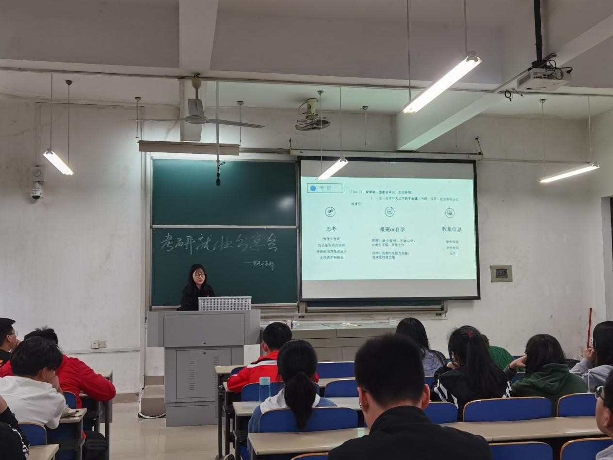 袁雨薇、罗尚松、张龙渠、王阳、罗强五位同学则分别介绍了国网、南网和非全的情况,强调了专业学习的重要性,鼓励学弟学妹们多参与社会实践,提升自身综合实力,充实自己的简历。