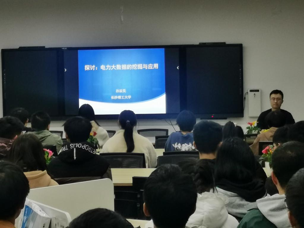 讲座围绕大数据概论、途径,大数据挖掘、应用;电力大数据等等背景展开。通过讲座,让学生了解大数据的应用场景,引导学生了解大数据在电力领域的研究现状和发展趋势,以及这些发展方向对未来社会发展的影响,增强学生在科学研究与学习当中的工程化思维、提升商业化视野。