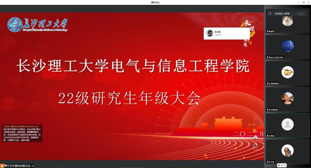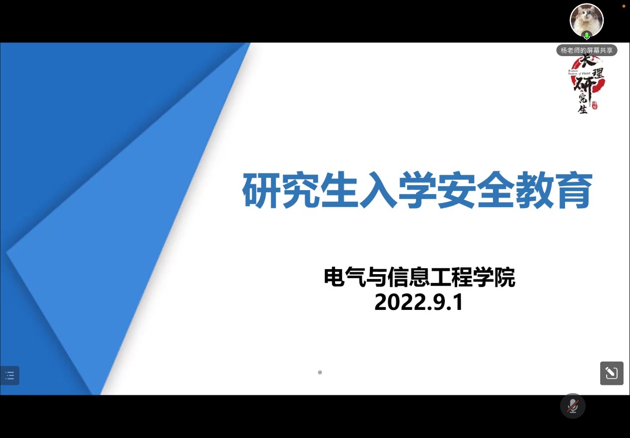 9月1日下午,电气学院线上召开2022级研究生新生年级大会,会议由研究生辅导员杨湘怡主持,科研办兰梦莹出席,电气学院院研会骨干及2022级全体研究生新生参会。