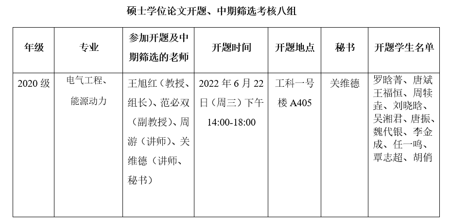 2022年研究生学位论文开题及中期筛选考核安排表(十七)