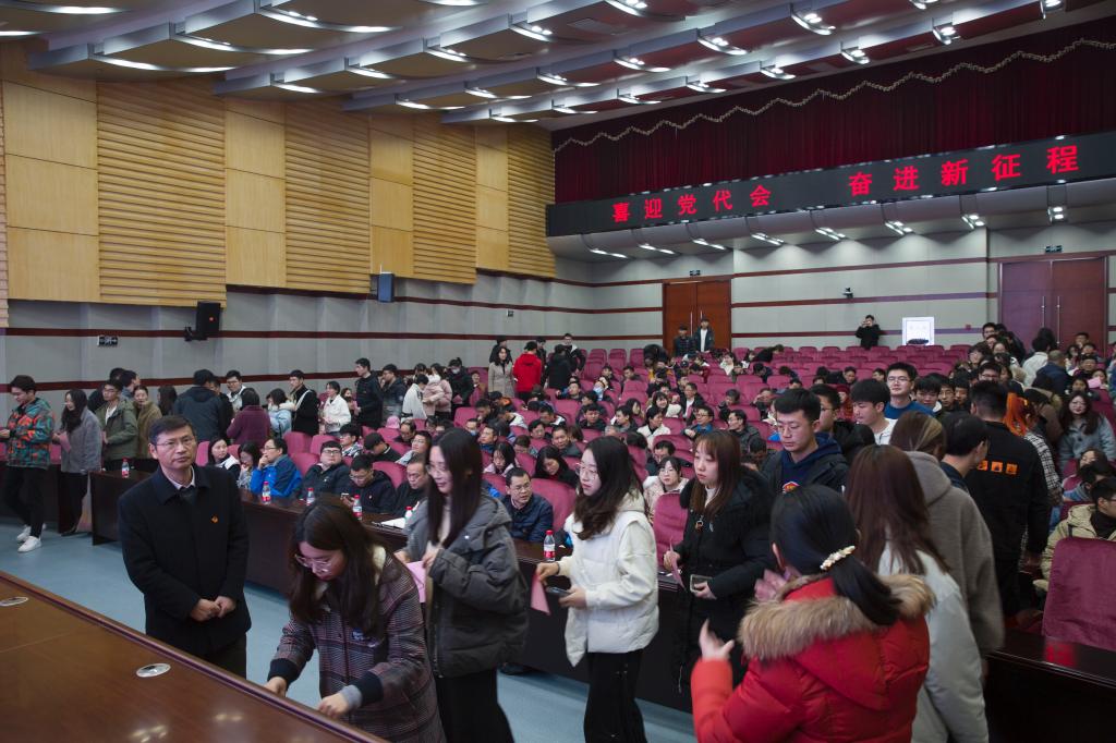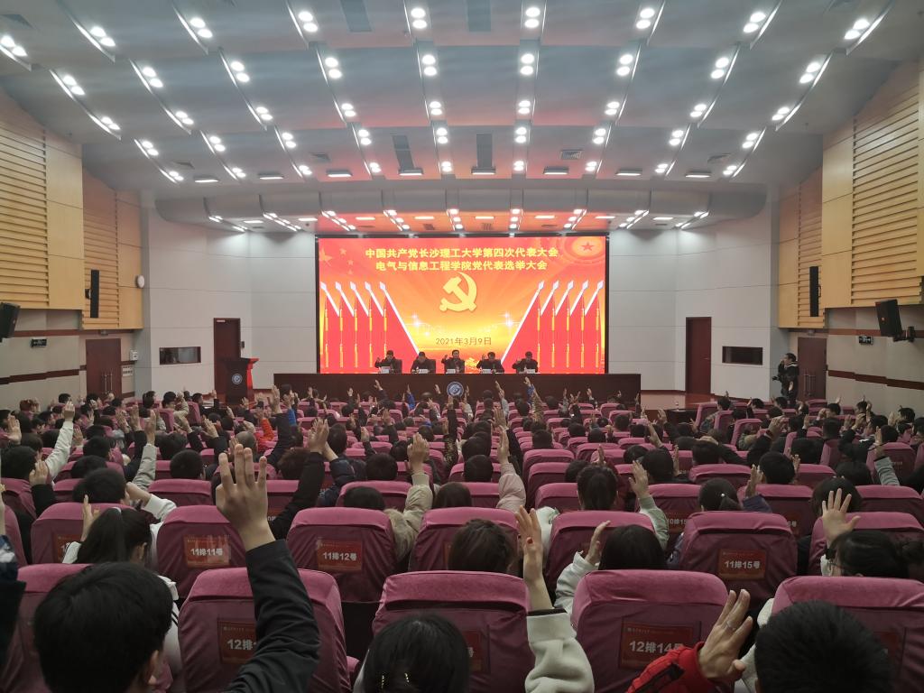 3月9日下午,电气学院在图书馆报告厅召开全体党员大会,差额选举产生了出席学校第四次党代会的代表,传达了校党委有关会议精神。院党委书记符慧林主持会议,校党委副书记、校长曹一家,学院副院长樊绍胜、夏向阳、李泽文等党员领导及全院师生正式党员共270人出席。