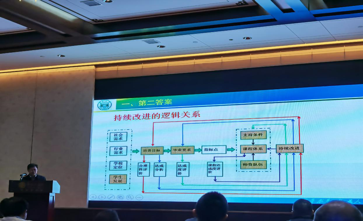 伟德曾祥君教授代表学校致欢迎辞。原湘潭大学党委书记、原湖南大学副校长章兢教授作了“基于反馈控制理论的教学持续改进”的主旨报告。他结合闭环控制系统,详细讲述了以学生培养目标为期望值,毕业要求作为主控制器、教学计划和课程大纲作为副控制器,实时根据课程目标、毕业要求、培养目标达成评价反馈,持续改进的闭环过程。
