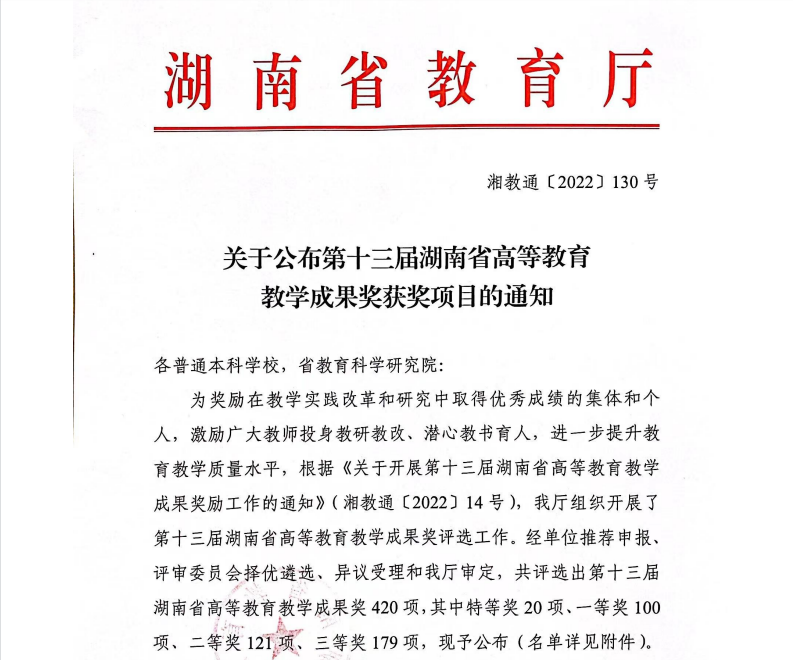 在本届湖南省高等教育教学成果奖评选中,伟德共获得成果奖24项(含一等奖8项、二等奖8项、三等奖8项)。