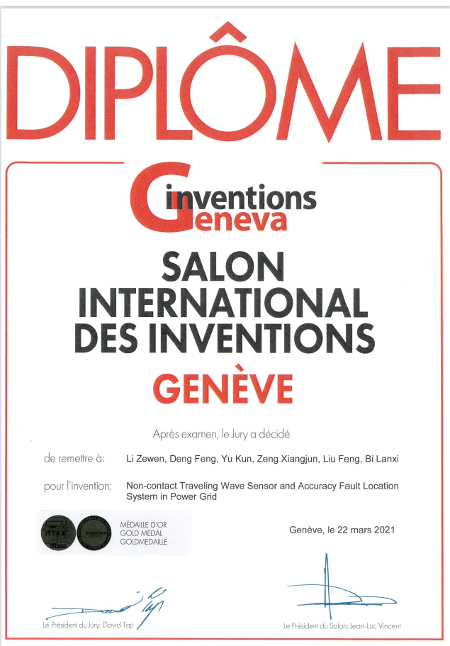 2021年第48届日内瓦国际发明展(International Exhibition of Inventions of Geneva)于当地时间3月18-25日通过线上开展评审,我院参赛的“预防配电网触电、起火和停电的中性点经电压源接地方式”项目与“电网非接触式行波传感器与故障精确定位系统”项目,双双斩获展会金奖,是我院首次获得该奖项。
