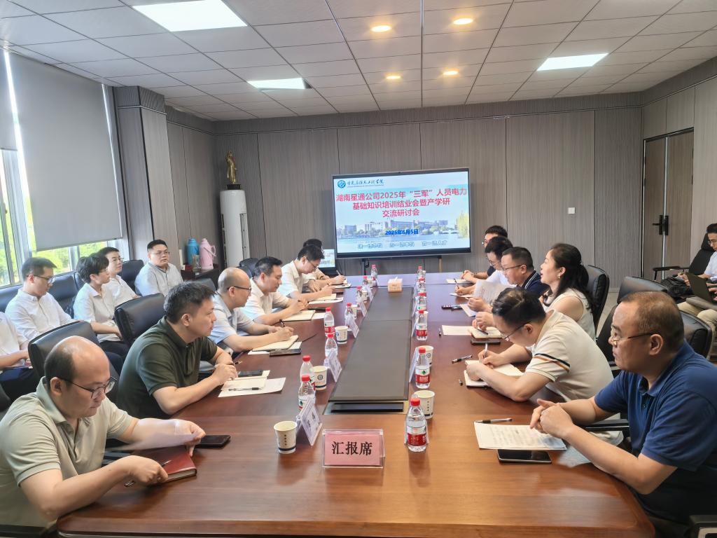 6月5日,湖南星通电力信息通信有限公司三级职员邹昶鑫一行来院参加2025年星通电力“三军”人员电力基础知识培训结业暨产学研交流研讨会。学院党委书记丁丹、党委副书记周巍、电网防灾减灾全国重点实验室副主任姜飞等院领导及教师代表参加座谈。