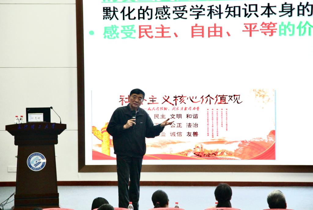 5月14日下午,论坛在云塘校区图书馆报告厅举行。叶志明作题为“言传身教,教书育人——课程思政之时间逻辑”的主旨报告,并与参会教师进行了互动交流。叶志明的报告从什么是课程思政、怎么做好课程思政和课程思政之本质三个方面,用通俗易懂的语言和深入浅出的案例诠释了《高等学校课程思政建设指导纲要》中的“守好一段渠、种好责任田”,坚持专业课堂与思想政治理论课同向同行、协同发力。他表示,课程思政是心灵的沟通与传递,教师既要教授知识也要传递情怀,并在提问环节鼓励大家将教学与科研相结合,用有限的精力去同时做好教学、科研。