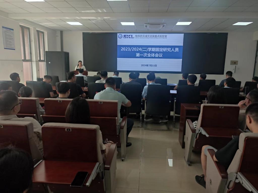 7月11日上午,电网防灾减灾全国重点实验室(以下简称“实验室”)在工训楼300会议室召开了固定研究人员第一次全体大会。学院党委书记丁丹主持会议,实验室副主任姜飞出席并讲话。