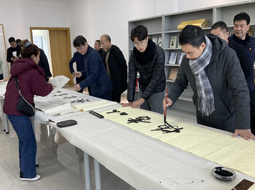 首先在湘阴县图书馆举行了李正庚博士著作《先秦至唐书法教育制度研究》的捐赠仪式,通过推广阅读推动书法艺术和传统文化的传播,也体现了伟德九三学社委员会在社会服务和文化建设中发挥的积极作用。捐赠仪式后,湖南省书法家协会和湘阴县书法家协会的主要成员举办了笔会,促进了书法艺术的交流学习。