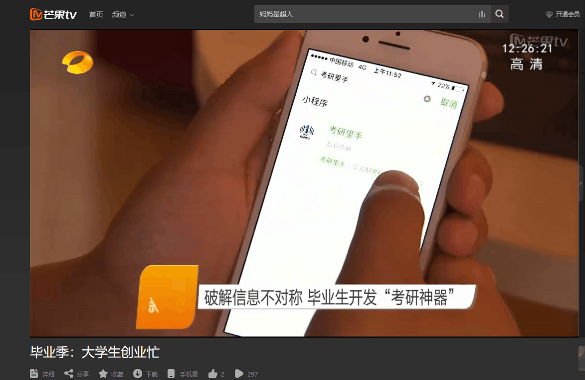 湖南卫视5月24日午间新闻对伟德能源与动力工程学院2014级学生林恩承与2015届毕业生李升志共同创业的故事进行了报道,为了给更多“考研族”引路,他们自主创业,开发了一款名为“考研里手”的微信小程序,旨在为考研学子与在读研究生搭起实时互动交流平台,将有效解决考研信息不对称的问题,极大提升备考效率。
