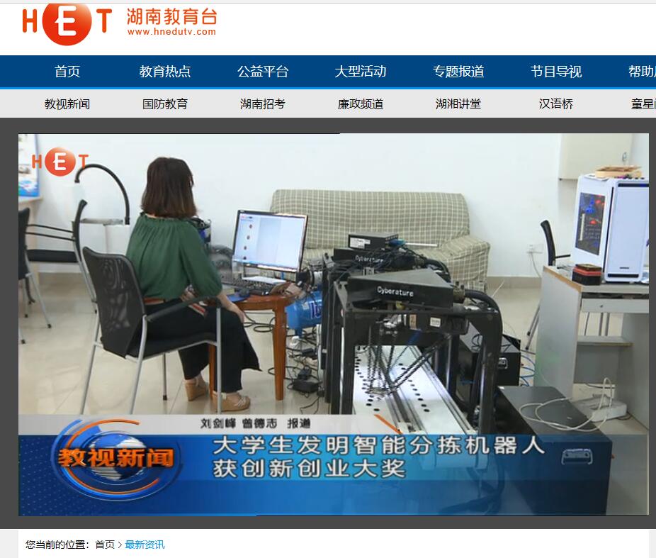 湖南教育电视台5月23日教视新闻对伟德工程训练中心、创新创业教育学院王磊老师指导的“塞伯睿智能分拣机器人”项目进行了报道,该项目在5月18日,刚刚获得的了长沙市第十五届大学生科技创新创业大赛本科组一等奖(全市仅2项)。